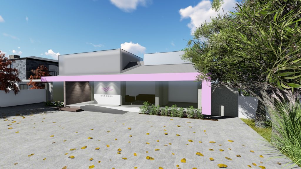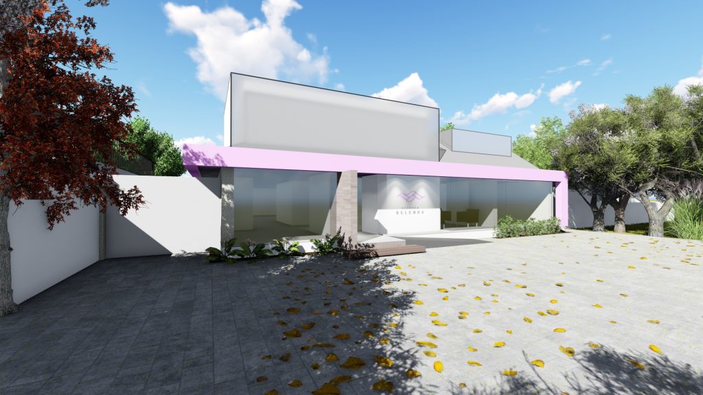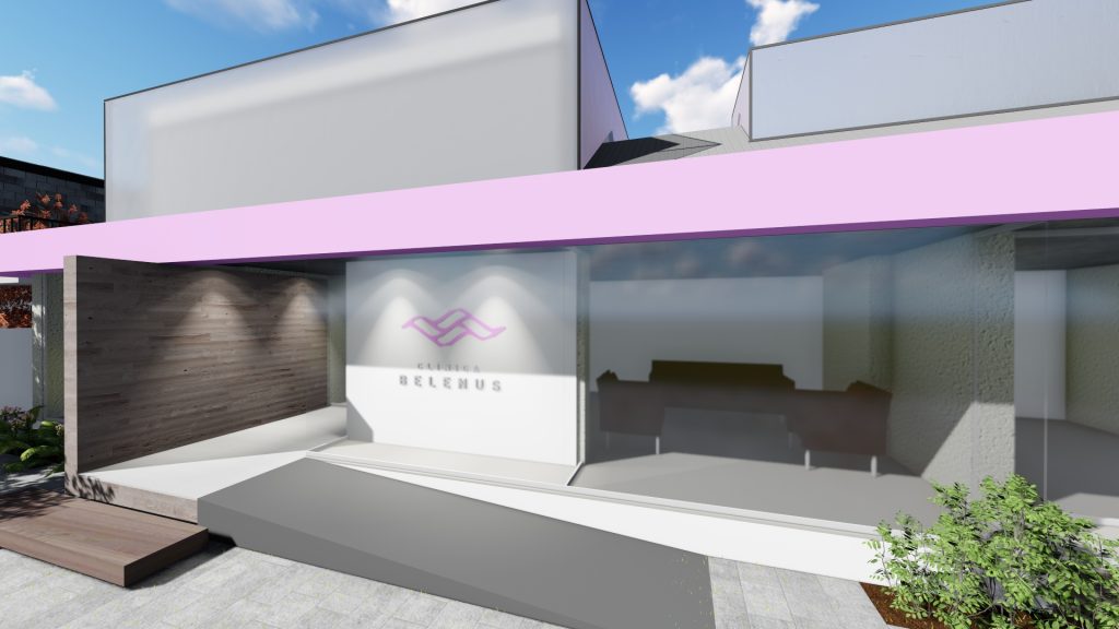 Renovación de fachada y diseño exterior para clínica de estética y cirugía plástica. Concepto limpio y minimalista que proyecta una imagen fresca y confiable.