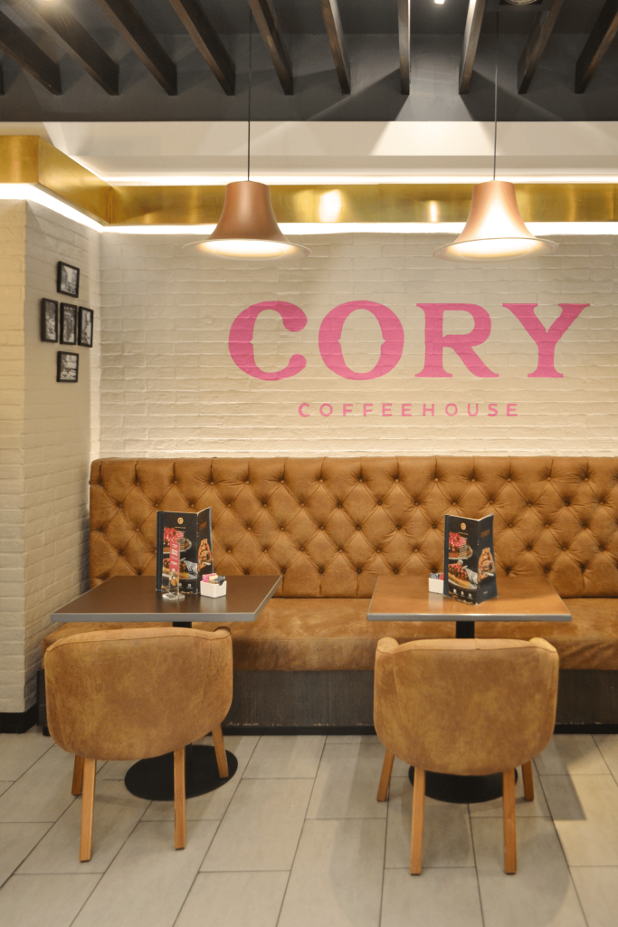 Diseño de interiores para todas las cafeterías de la cadena Cory a nivel nacional. Gestión de permisos municipales incluida. Concepto calido y dulce.